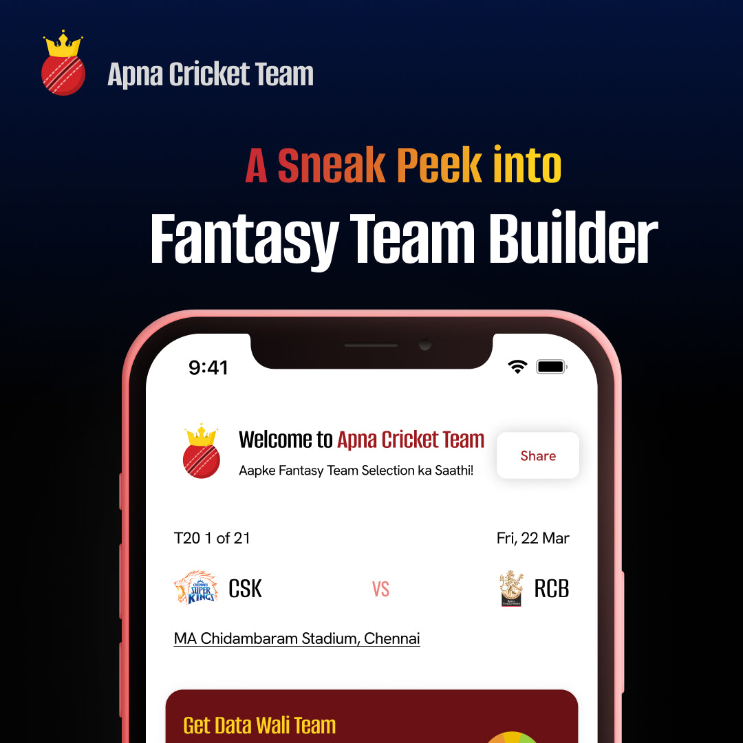 Ab apna winning fantasy teams banaye Apna Cricket Team k Fantasy AI Team Builder k saath. Yeh Team builder aapke Dream11 Teams banane mein and winnings badhane mein help karega