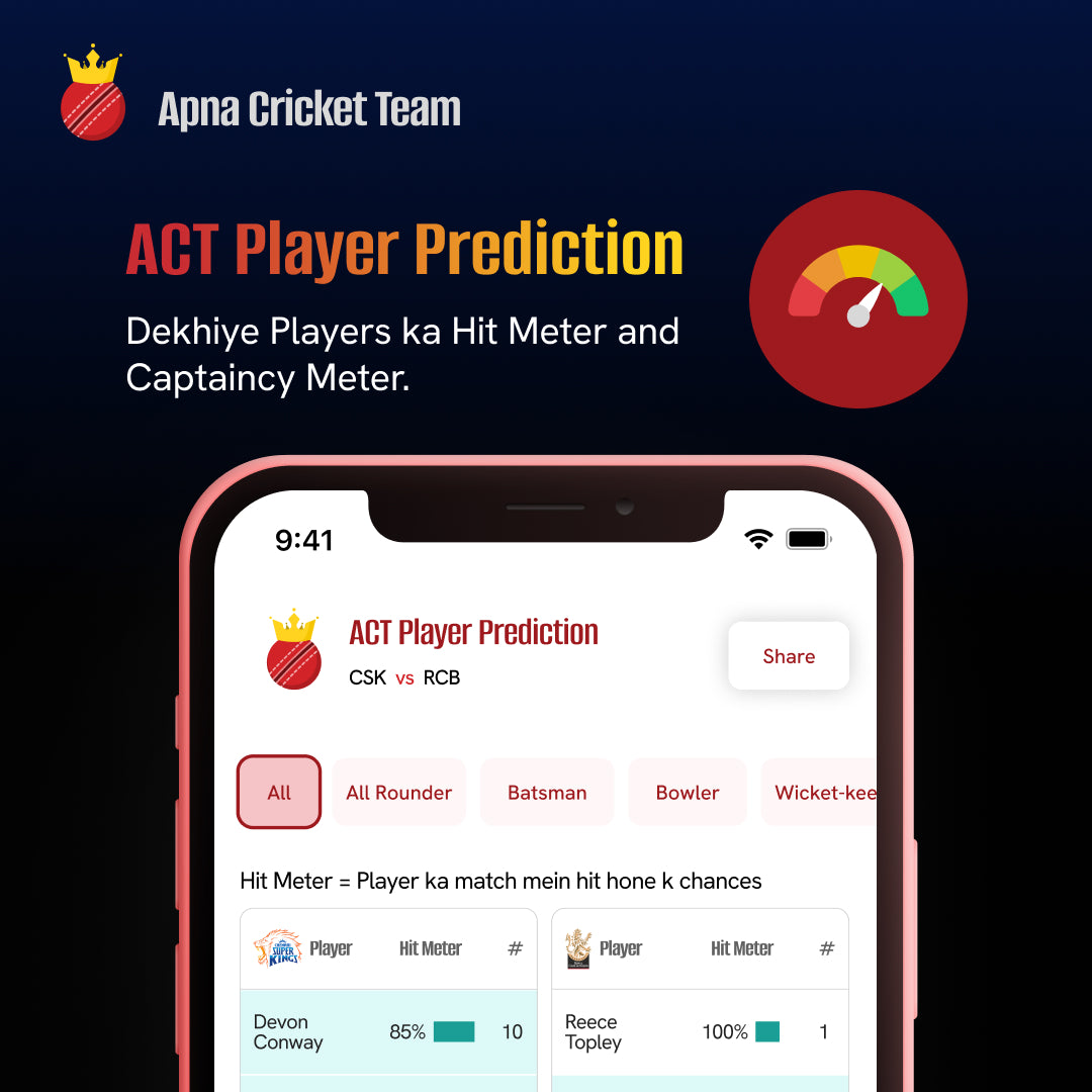 Apna fantasy cricket team ko Hit Meter aur Captaincy Meter ke saath next level pe le jao. Chahe next Virat Kohli ka form talashna ho ya Rohit Sharma ki captaincy ka masterstroke predict karna ho, ye tools aapko form aur leadership qualities ko naye nazariye se dekhne mein madad karte hain. Bharat ke cricket premiyon ke liye perfect, ye tools aapko analytics aur cricketing gyaan ka best mix dete hain.